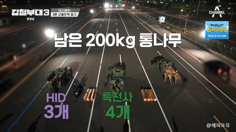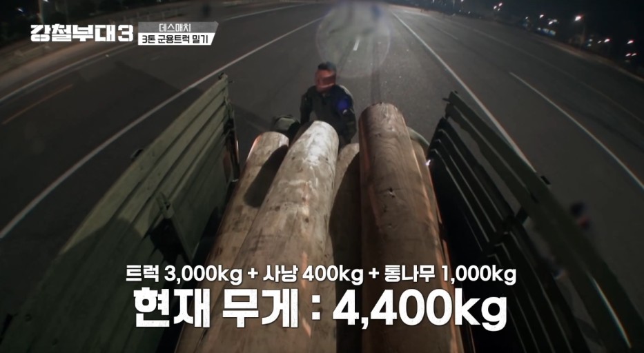 특전사의 통나무가 제일 많이 남은 상태이다. 하지만 바깥으로 선이 넘어가게 되면 탈락이기 때문에 운전석에도 한명이 배치되어 결승선까지 가게 된다.