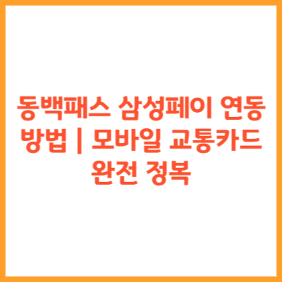 동백패스 삼성페이 연동 방법|모바일 교통카드 완전 정복