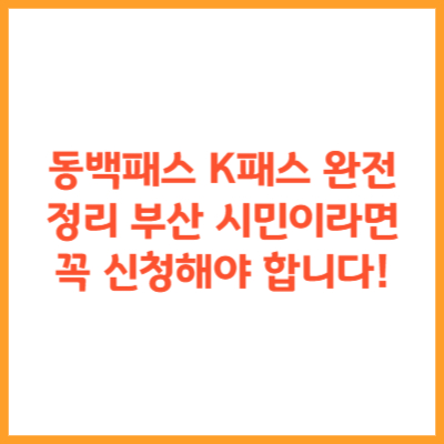 동백패스 K패스 완전 정리 – 부산 시민이라면 꼭 신청해야 합니다!