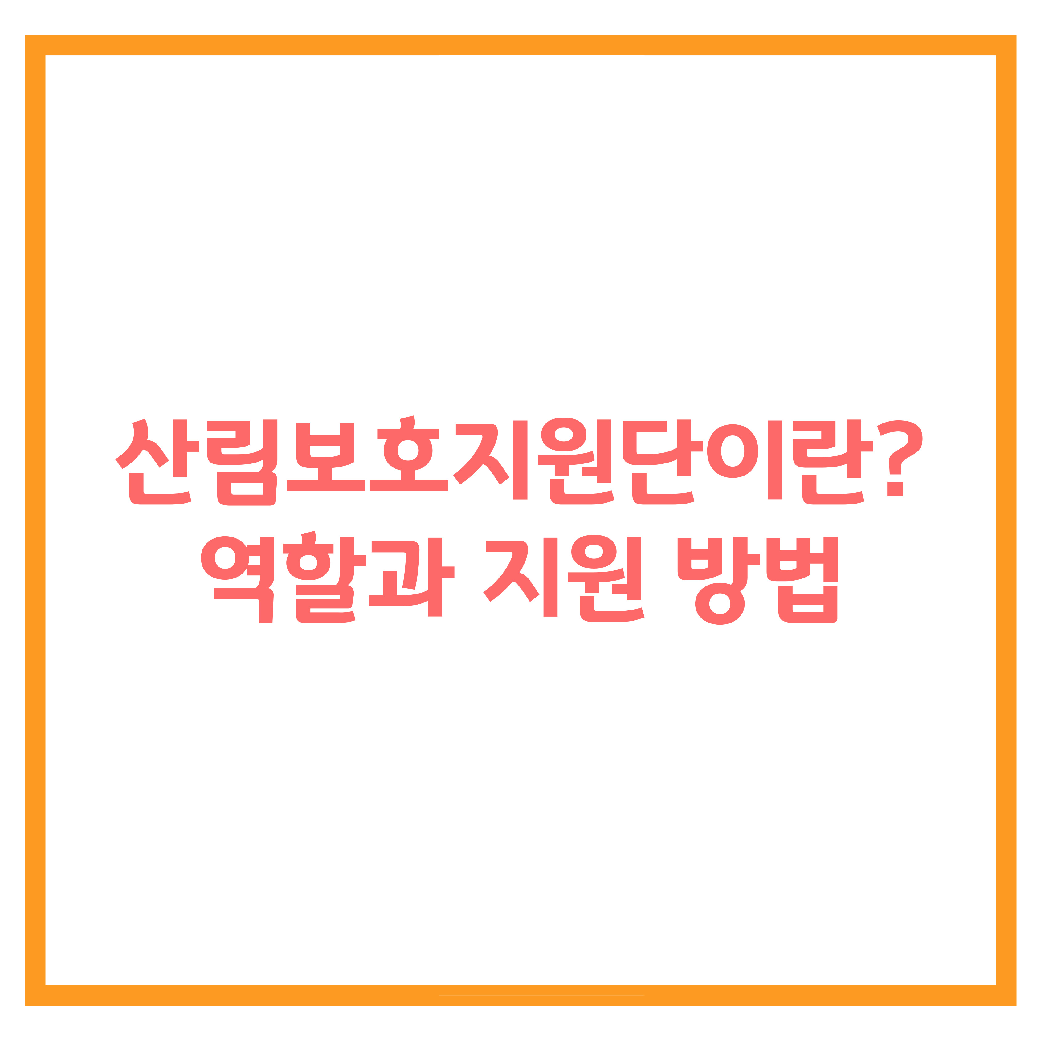 산림보호지원단은 산림 보호 및 관리 업무를 수행하는 인력으로, 산불 예방, 산림 정화, 병해충 방제 등의 다양한 활동을 진행합니다. 우리나라의 숲을 지키고 자연을 보호하는 중요한 역할을 합니다.