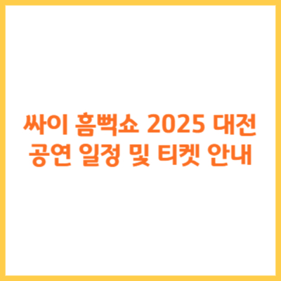 싸이 흠뻑쇼 2025 대전 공연 일정 및 티켓 안내