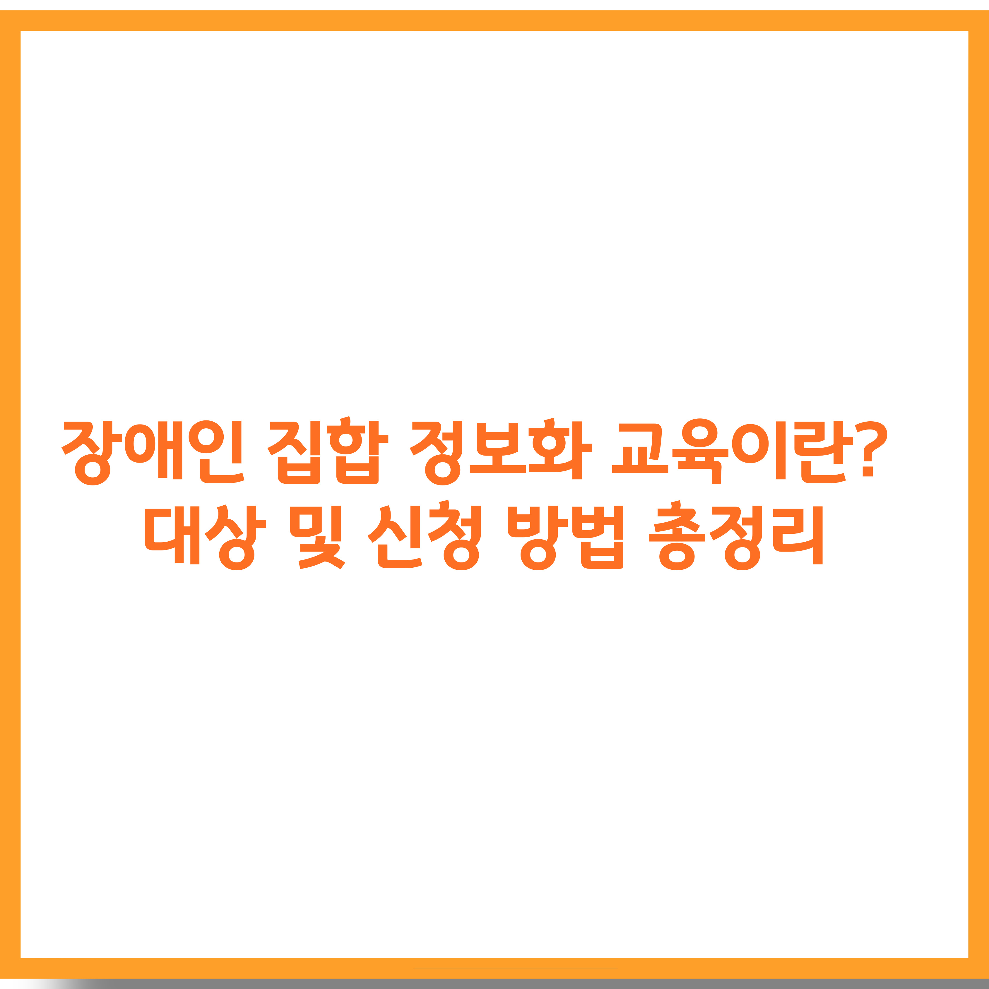 장애인 집합 정보화 교육은 장애인의 디지털 접근성을 향상시키고, 정보 활용 능력을 높이기 위해 정부와 지자체에서 운영하는 교육 프로그램입니다. 컴퓨터, 스마트폰, 인터넷 활용법 등을 체계적으로 교육하여 장애인의 사회 참여와 자립을 지원하는 것을 목표로 합니다.