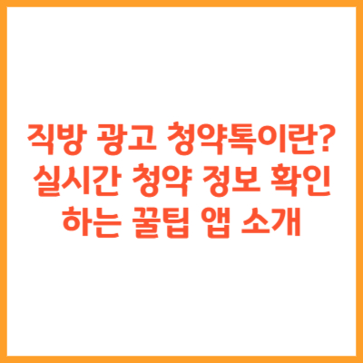 직방 광고 청약톡이란? 실시간 청약 정보 확인하는 꿀팁 앱 소개