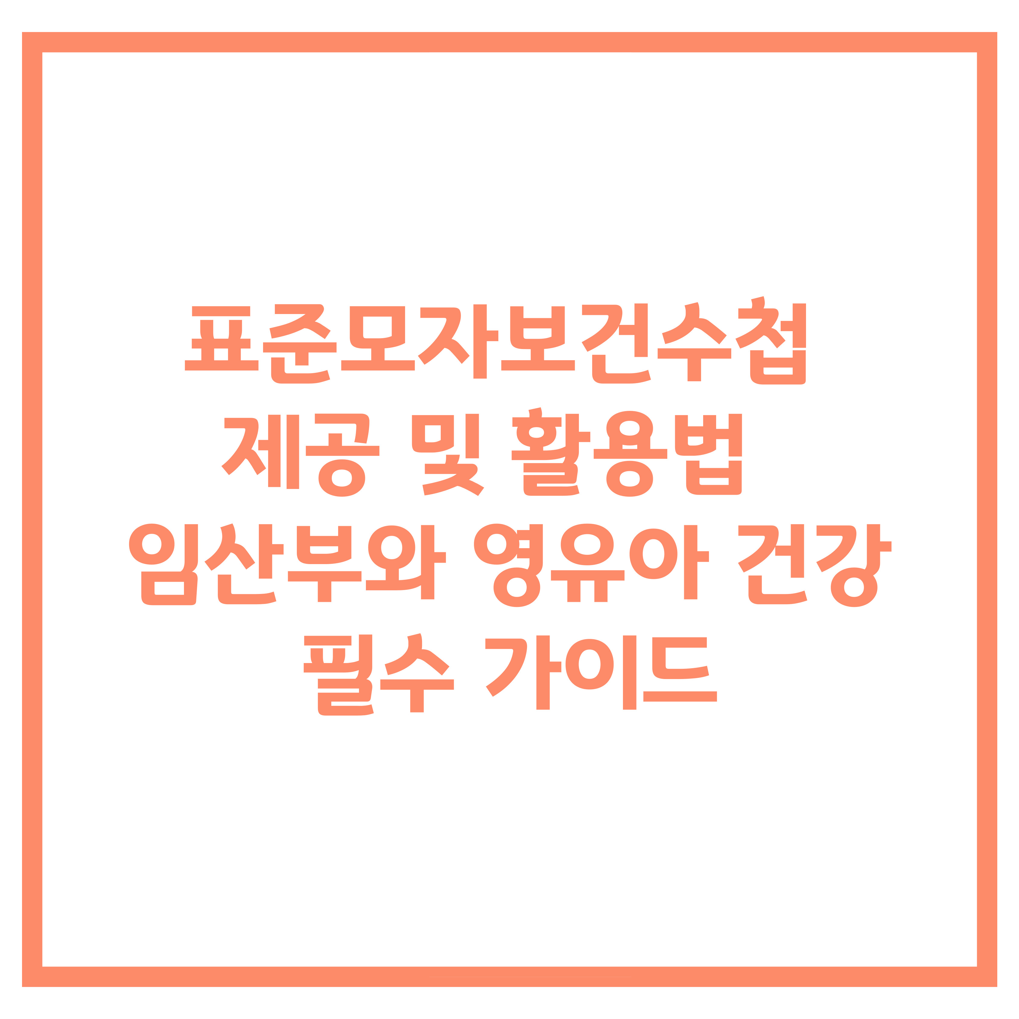 표준모자보건수첩은 임산부와 영유아의 건강을 체계적으로 관리할 수 있도록 정부에서 제공하는 공식 기록 수첩입니다. 이 수첩은 임신, 출산, 영유아 성장 과정에서 필요한 의료 기록을 작성하고 중요한 건강 정보를 담고 있어 필수적으로 활용해야 합니다.
