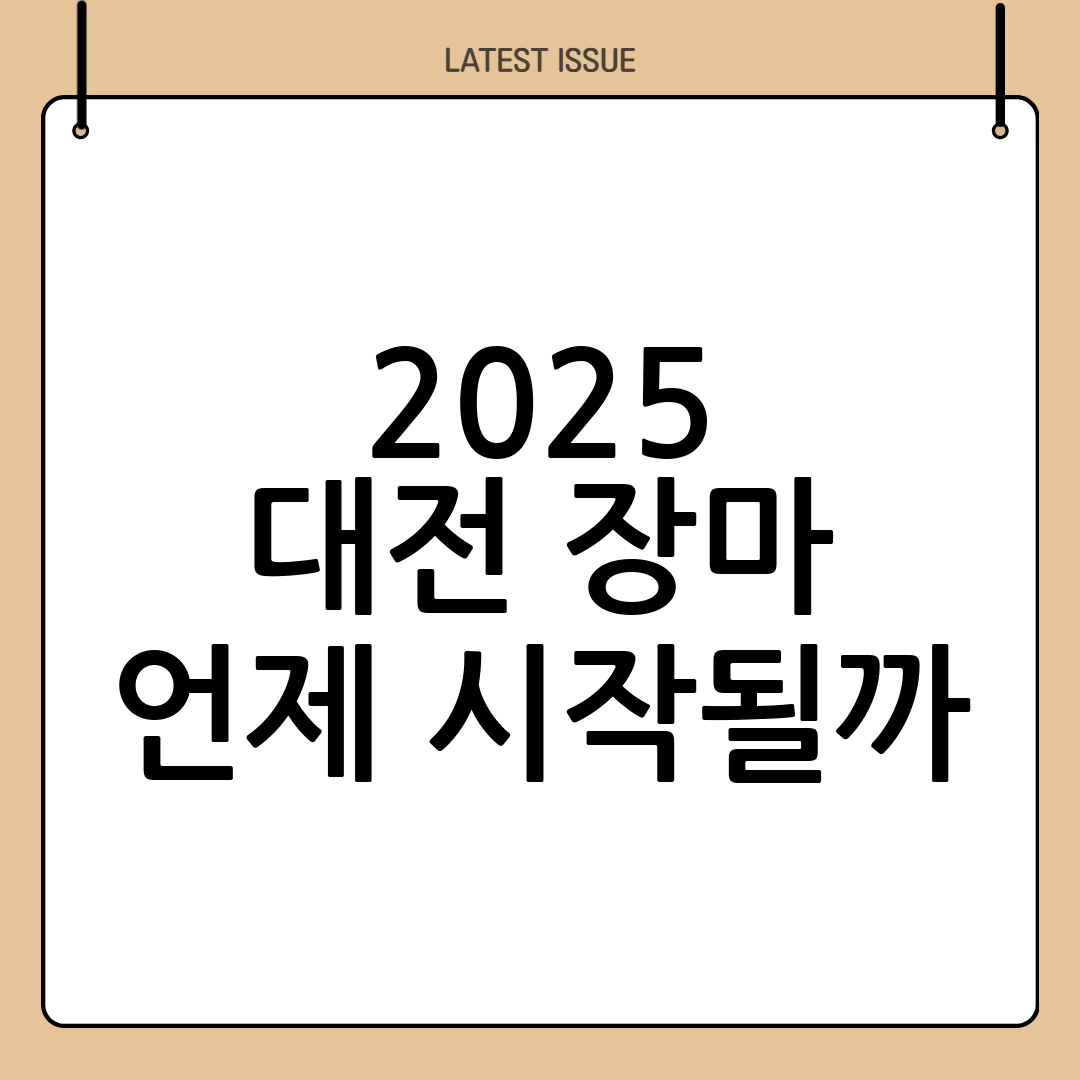 기상청 중장기 기상전망에 따르면, 2025년 대전의 장마 시작일은 6월 21일(토)로 예상되며, 종료일은 7월 23일(수)로 예상되고 있습니다. 이는 예년 평균보다 3~4일 정도 빠른 편입니다.
