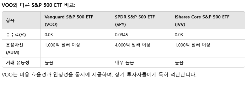 VOO는 비용 효율성과 안정성을 동시에 제공하며, 장기 투자자들에게 특히 적합합니다.
